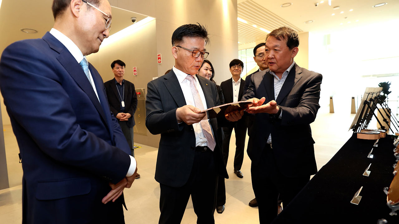 한국산업은행이 충북 오송에 있는 반도체 부품기업 샘씨엔에스 공장을 찾아 신속심사 제도로 지원된 설비투자 진행 상황을 직접 점검했습니다.