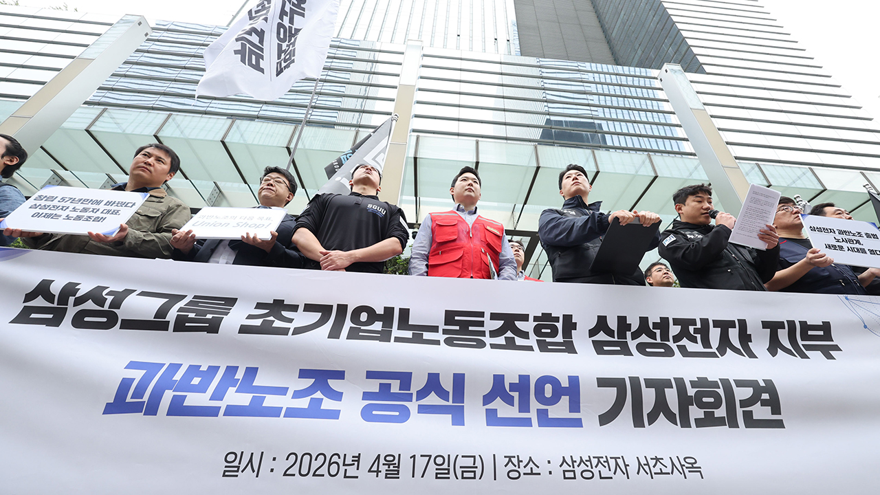 삼성전자 초기업노조는 17일 오전 서울 서초구 삼성전자 서초사옥 앞에서 기자회견을 열고 공식적인 과반노조 및 근로자대표 지위를 확보했다고 밝혔습니다.