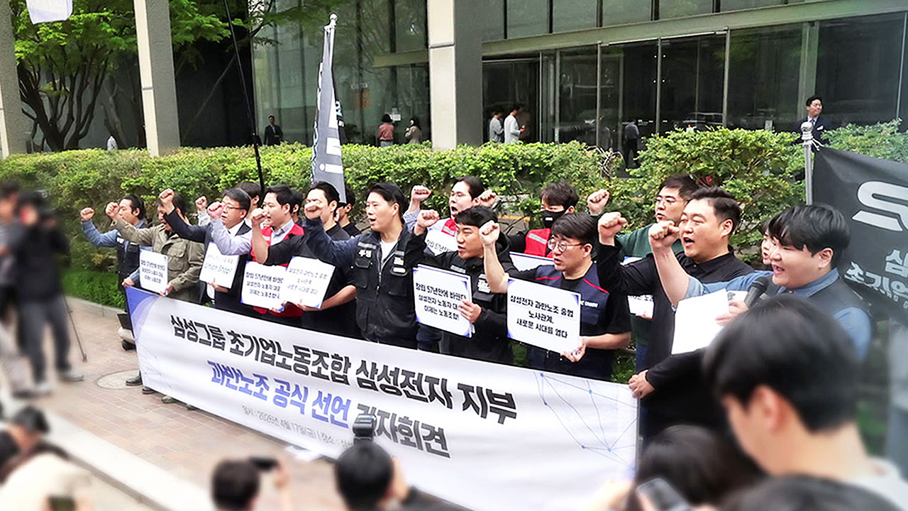 [최승호/삼성그룹 초기업노조 위원장 : 초기업 노조는 이제 법적 근로자 대표로서 진정한 노사 관계의 정립을 위해서 회장님이 직접 밖으로 나와 허심탄회하게 이야기할 것을 강력히 촉구합니다.]