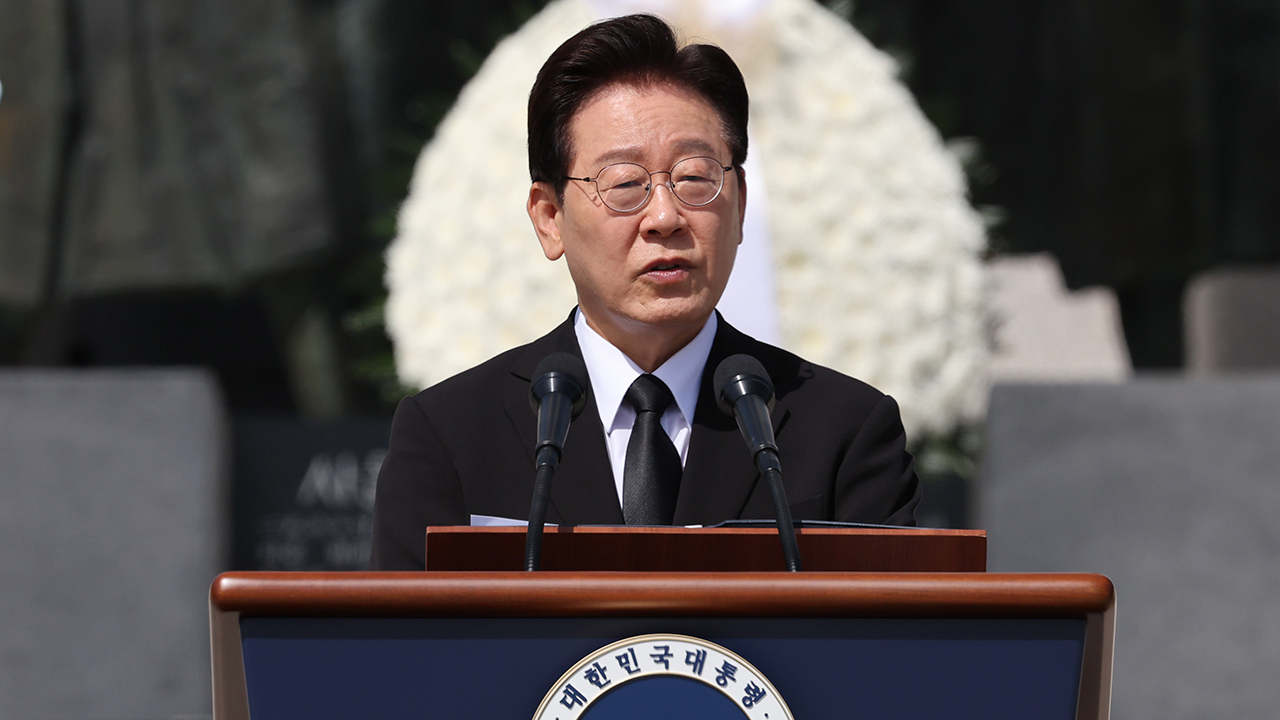 이 대통령은 "우리의 자랑스러운 민주주의 역사는 순풍에 돛을 단 유람선처럼 평온하게 온 것이 결코 아니다"며, "격랑의 파도를 넘고 넘어 어느 곳 하나 성한 데 없는 상처투성이의 모습으로, 한 걸음씩 전진해 온 것"이라고 평가했습니다.