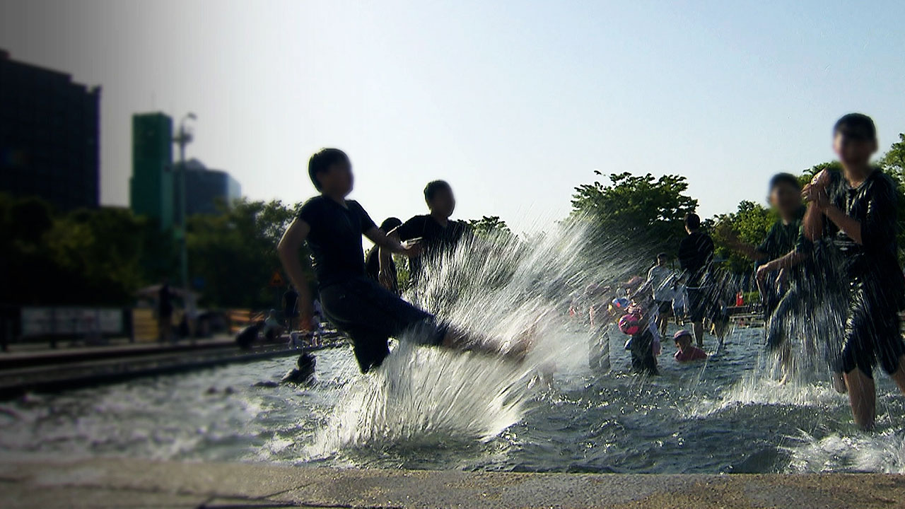 반팔, 반바지 차림에 물놀이를 즐기려는 아이들로 물빛광장이 가득 찼습니다.