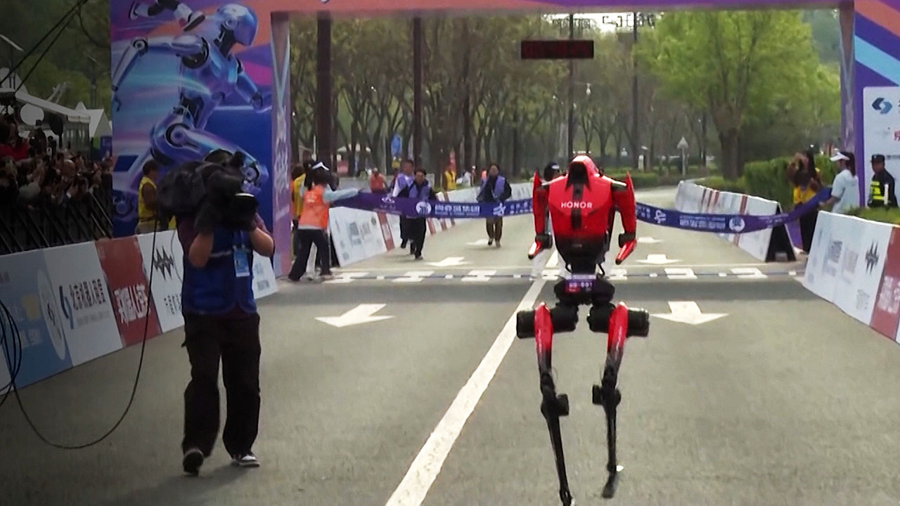 걷는 것도 어색했던 로봇이 이제 인간보다 빨리 달리는 시대가 열렸습니다. 중국에서 열린 로봇 하프 마라톤 대회에서 로봇이 인간이 세운 세계 기록을 7분이나 줄이며 우승했습니다.