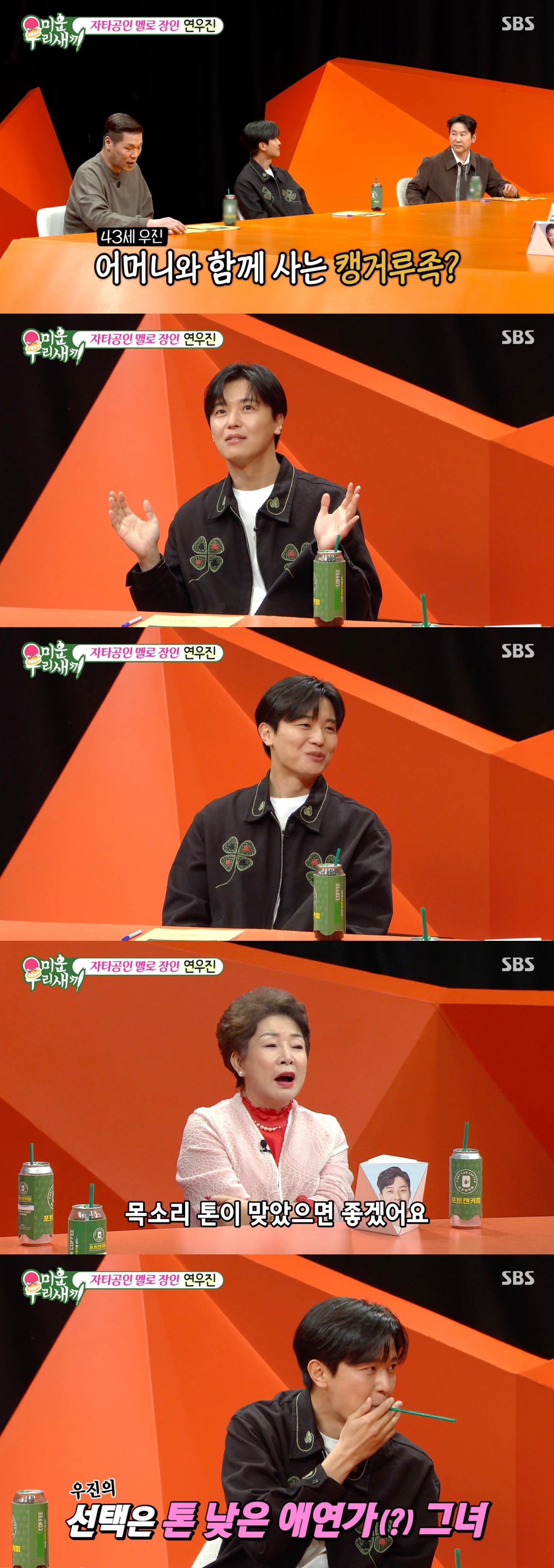 Yeon Woo-jin answered that, above any other condition, he prefers a woman with a lower voice tone, catching attention.
