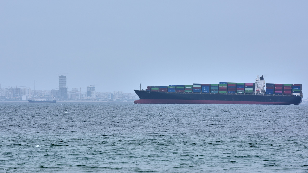▲ 이란 케슘섬 해안을 지나는 컨테이너선