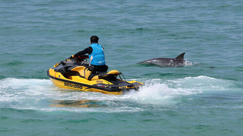 그러다 제트스키가 멈추면 머리까지 드러내 주변을 유영하며 자신이 돌고래라는 존재감을 드러냈습니다.