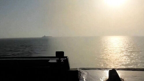 이란의 화물선 투스카호를 향해 기관실을 비우라고 경고합니다.