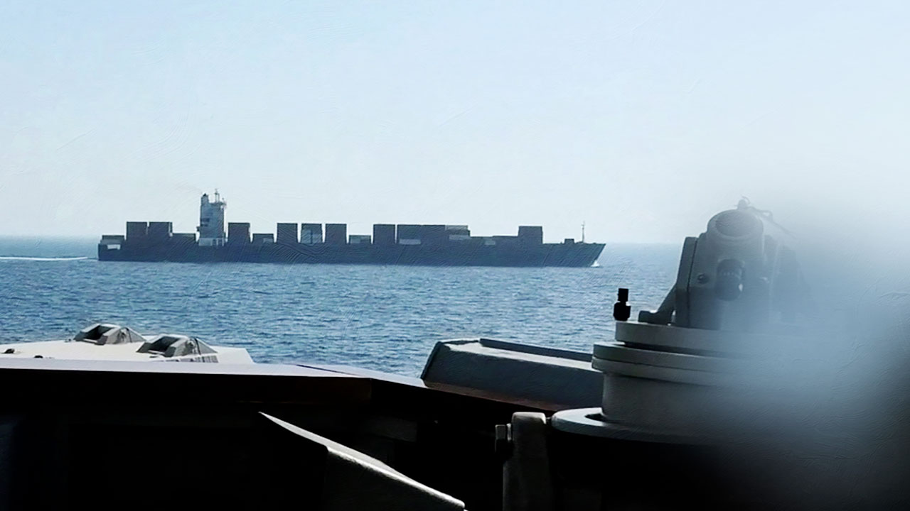 현지시간 19일 오만만에서 이란 반다르 아바스 항구로 이동 중이던 이란 국적의 화물선 투스카호가 이란 해상을 봉쇄 중인 미 해군 유도미사일 구축함에 포착됐습니다.