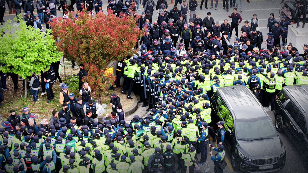 이번 사고는 파업에 나선 노조원 차량을 대신해 회사 측이 배송을 맡긴 비조합원 차량들이 물류센터를 빠져나가는 과정에서 노조원들이 이를 막다가 발생했습니다.