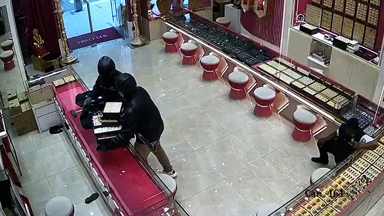 말레이시아에서는 마치 액션 영화의 한 장면 같은 대담한 범행 현장이 포착됐습니다.