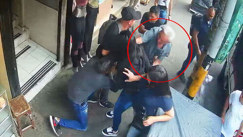 그 순간, 주변에 있던 사람들이 순식간에 몰려들어 남성의 옷을 뒤지고 소지품을 털기 시작합니다.