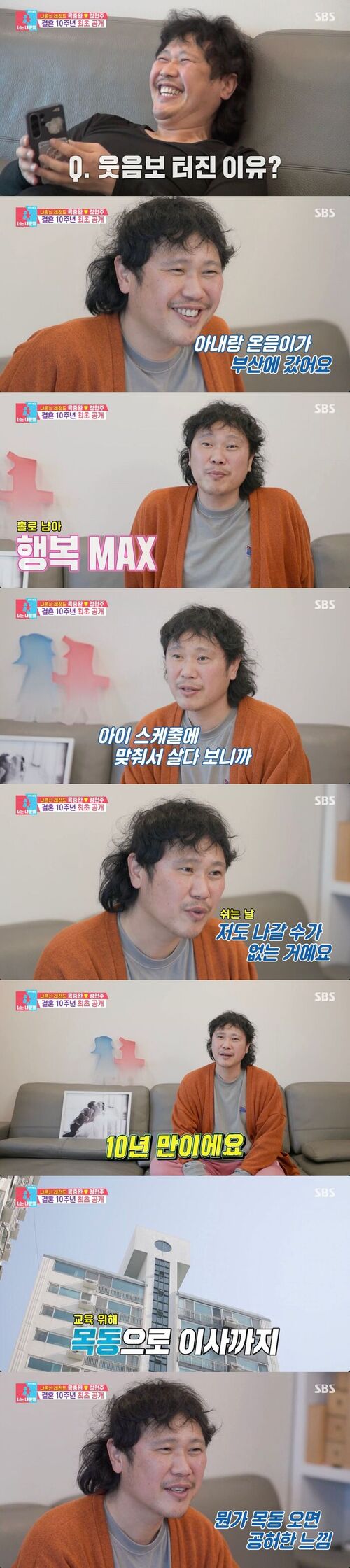육중완이 아내의 부재에 웃음을 감추지 못했다.