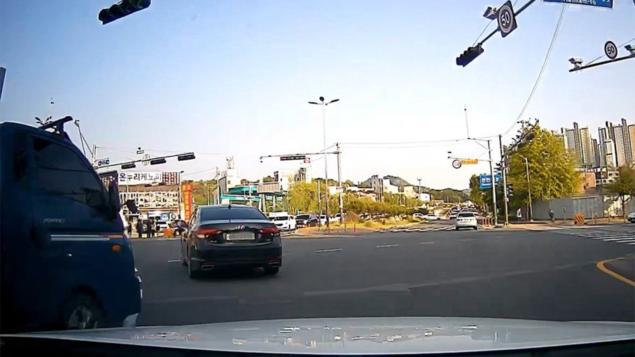 ▲ 좌회전 차로에서 직진하는 차량에 고의로 사고낸 A 씨 차량 블랙박스 영상