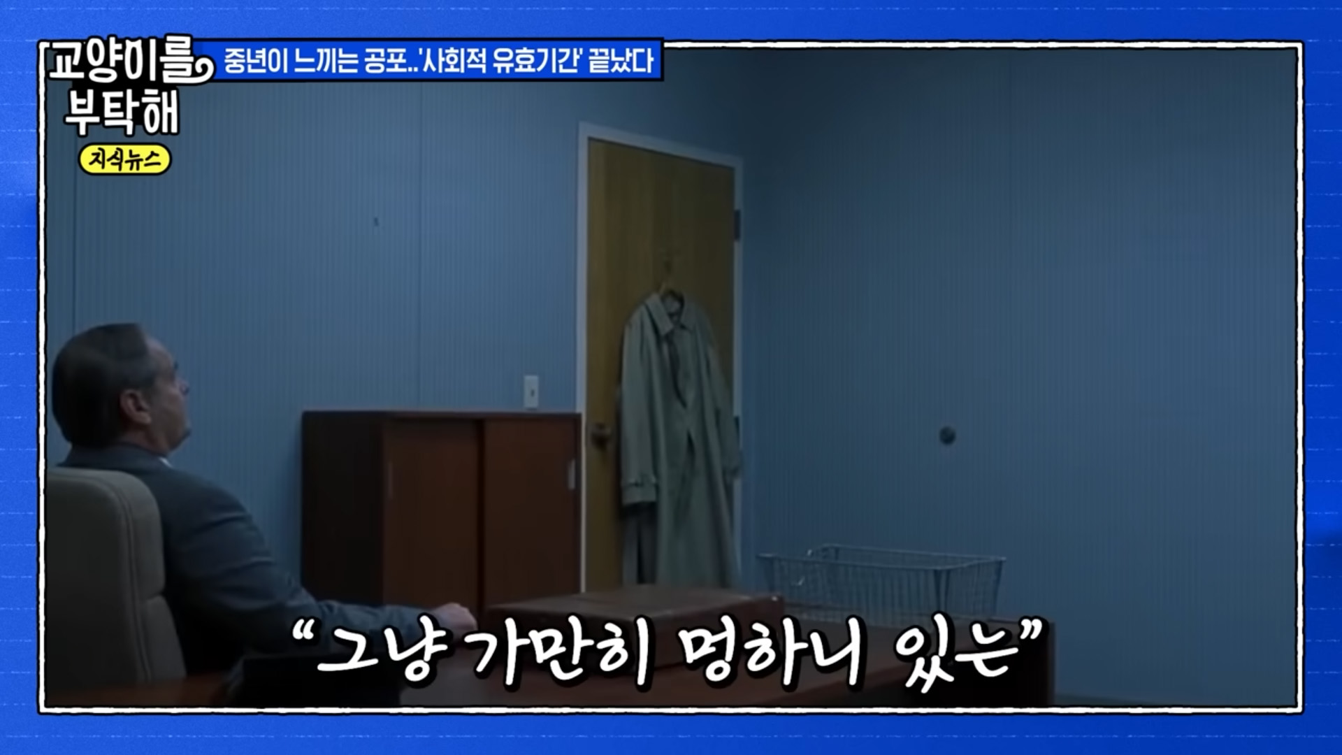 근데 설마 나한테까지 바로 오겠어? 대충 내가 정할 수 있을 거라고 생각을 하죠. '1~2년 먼저 나가도 그거 내가 정할 거야'라고 하는데 사기업인데 모르는 거거든요. 지금부터 준비를 해야 되는데 어느 날 덜컥 올 수도 있겠다는 두려움, 공포, 거기다가 경제 안 좋다지, 젊은 사람들이 중장년층 때문에 취업을 더 못한다지, 그러면 뭔가 좀 밀어낼 것 같지. 예전에는 일할 사람이 부족해서 정년 연장할 것처럼 얘기하더니 아직 지지부진하지.