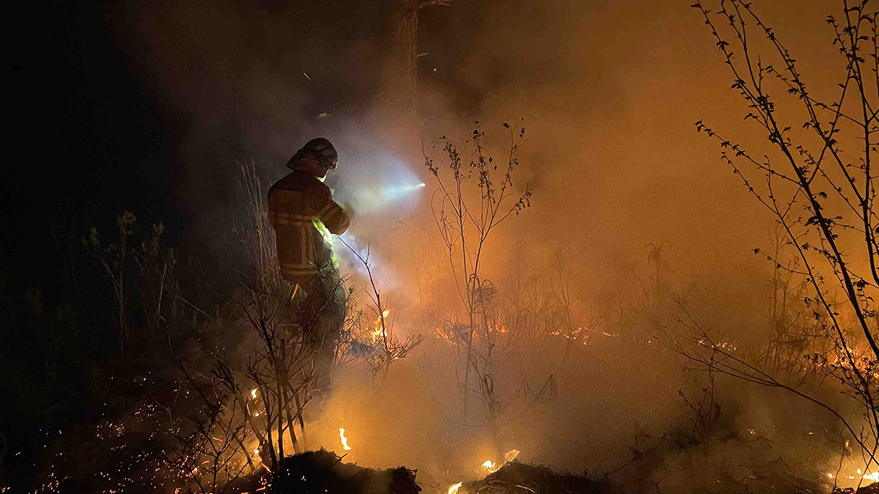 ▲ 지난 21일 오후 6시 50분쯤 강원 영월군 영월읍 영흥리 야산서 불이 나 소방대원이 진화작업을 벌이고 있다