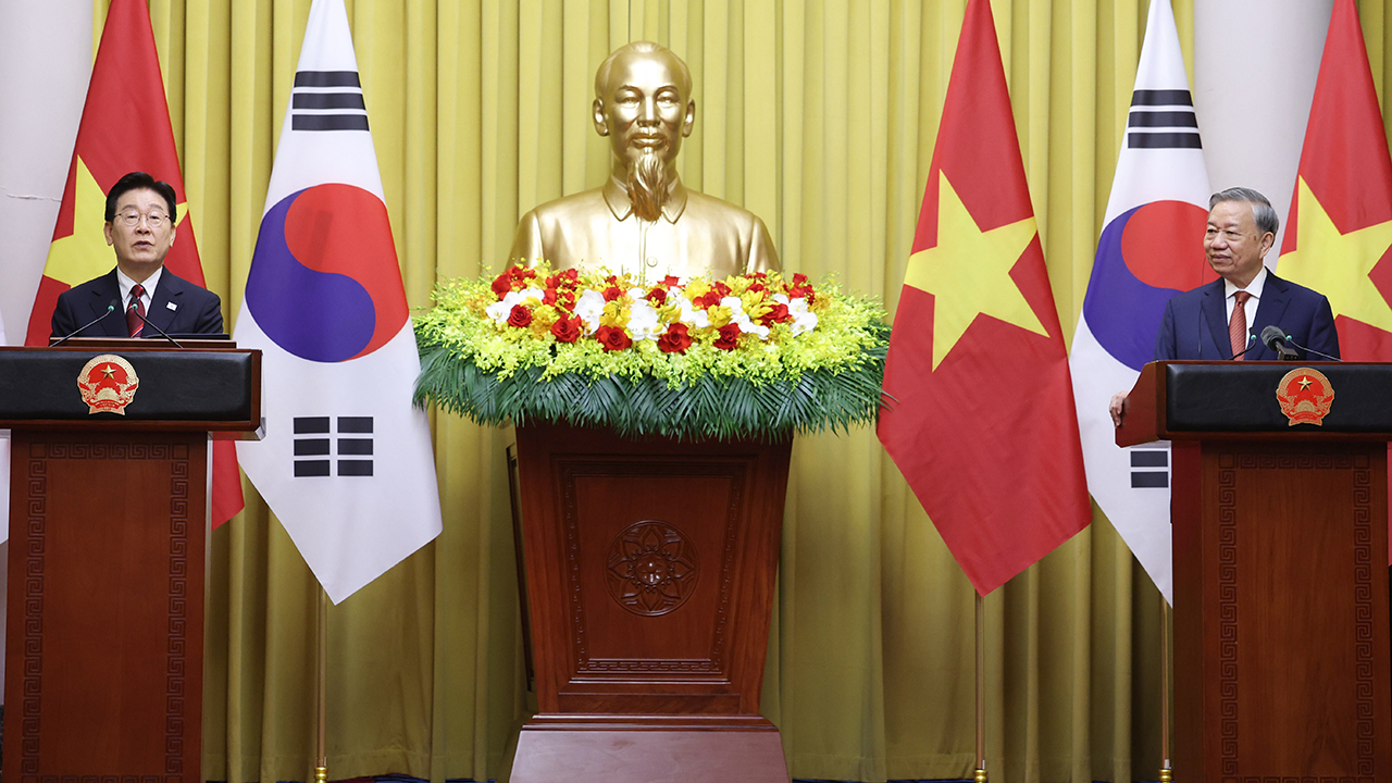 ▲ 이재명 대통령과 또 럼 베트남 공산당 서기장 겸 국가주석이 22일(현지시간) 하노이 주석궁에서 공동언론발표를 하고 있다.