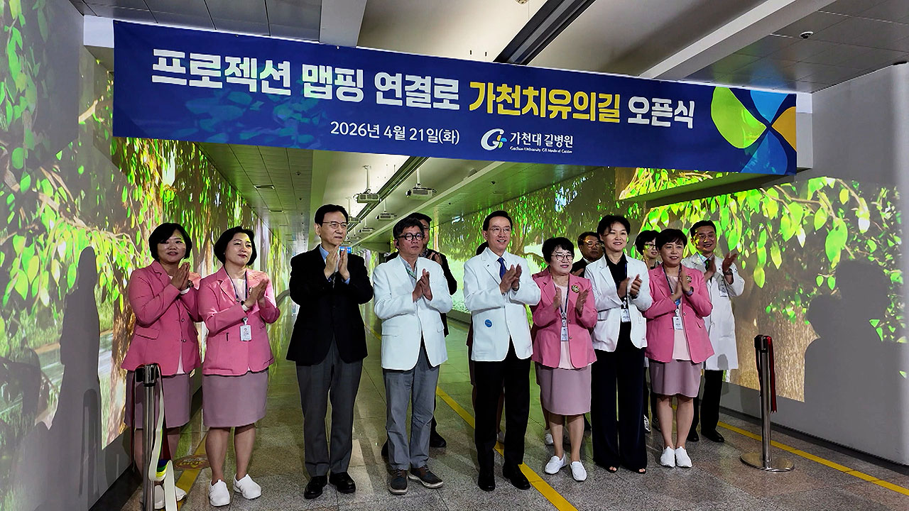 상급종합병원인 가천대 길병원이 본관과 암센터를 잇는 지하 연결로에 미디어아트 기술을 활용한 '가천 치유의 길'을 조성했습니다.