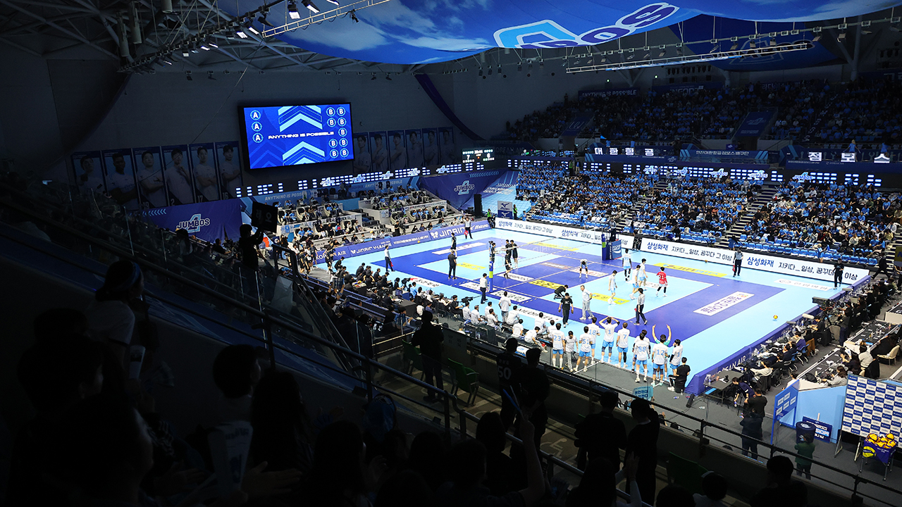 ▲ 지난 10일 인천 계양체육관에서 열린 프로배구 2025-2026 V리그 남자부 챔피언결정전 대한항공과 현대캐피탈 5차전 경기장을 찾은 시민들이 경기를 관람하고 있다.