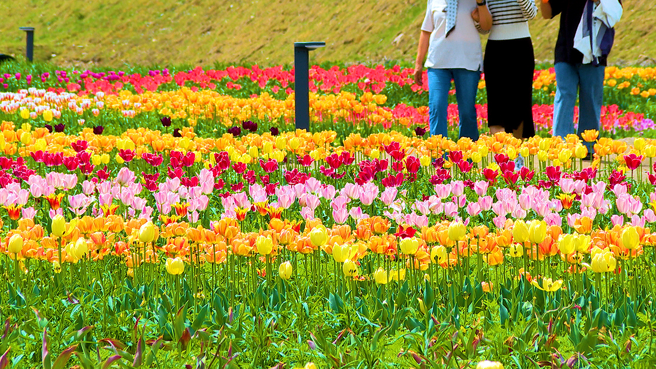 전북 고창군 고창읍에 조성된 '꽃정원'에 형형색색의 튤립이 만개하자 관광객들의 발길이 이어지고 있습니다.