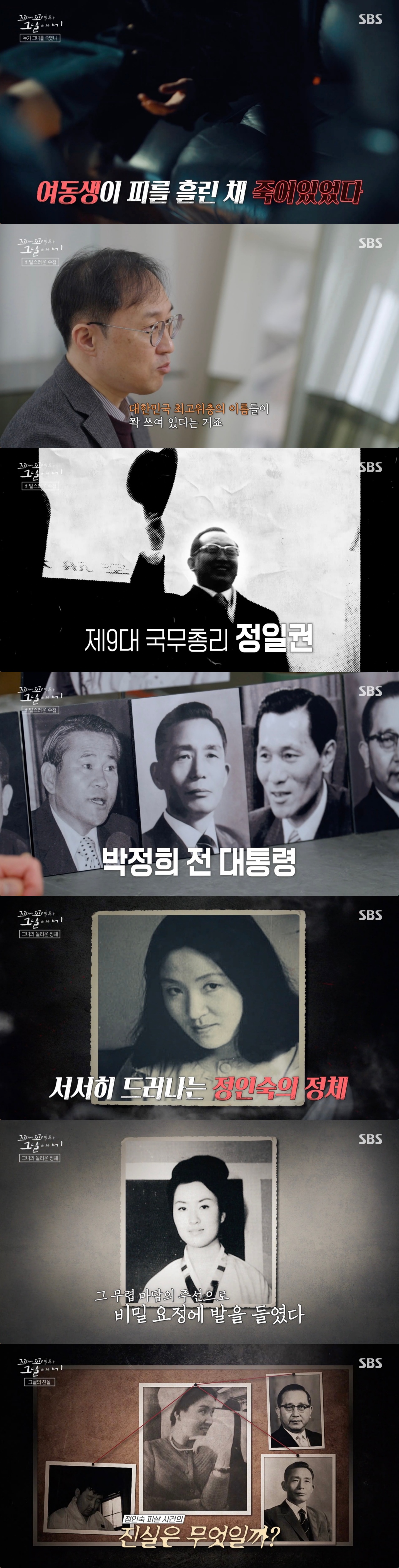 23일 방송된 SBS '꼬리에 꼬리를 무는 그날 이야기'(이하 '꼬꼬무')에서는 '방아쇠를 당긴 손 - 1970 강변3로 피살사건'이라는 부제로 정인숙 사망 사건을 추적했다.