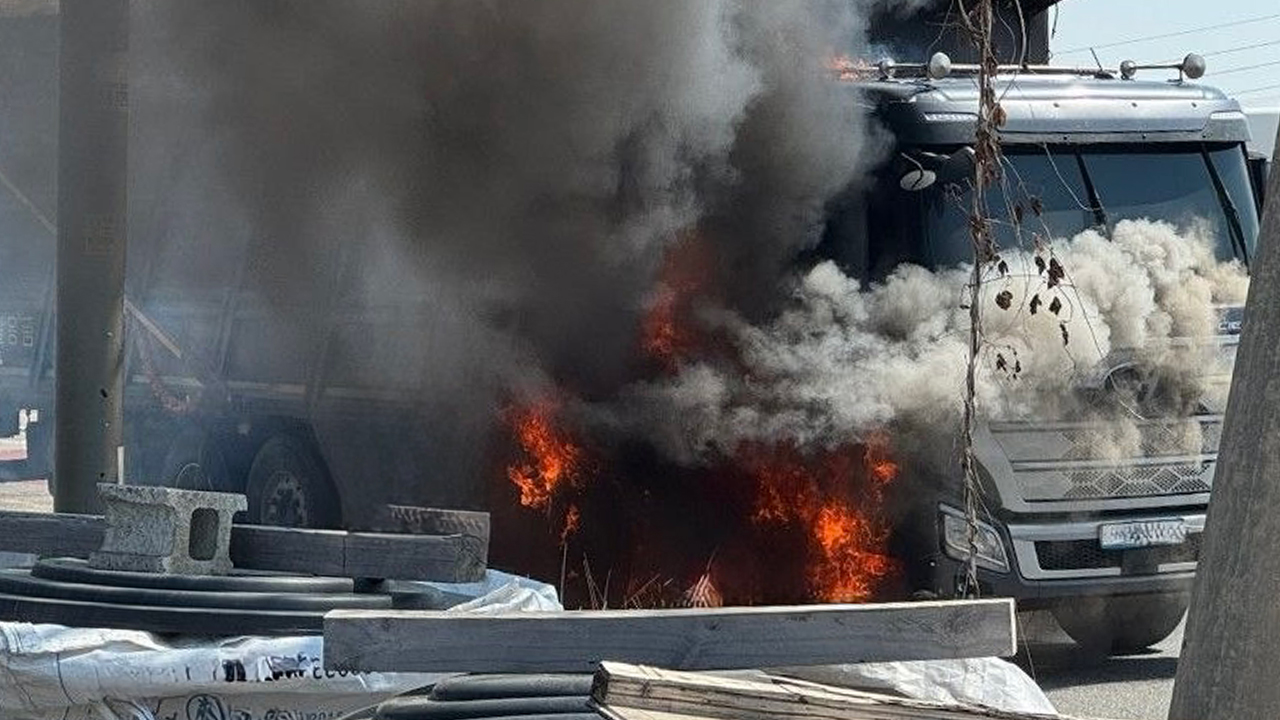 ▲ 25일 오전 10시 33분쯤 경기도 평택시 포승읍 한 도로를 달리던 화물차에서 화재가 발생했다.