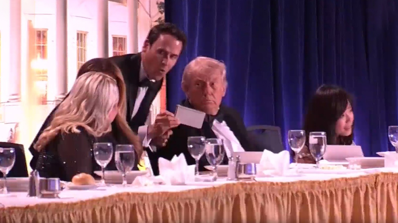 무대 위 헤드테이블에 앉아 있던 트럼프 대통령과 다른 인사들은 일단 테이블 아래로 몸을 숙인 뒤 피신했습니다.