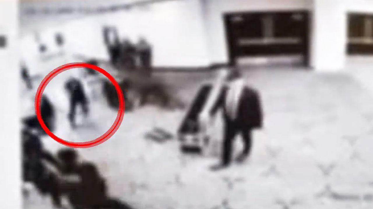 잠시 뒤 복도 끝에서 한 남성이 나타나더니 요원들 사이로 맹렬하게 돌진하고, 보안 요원들은 총을 꺼내 대응에 나섭니다.