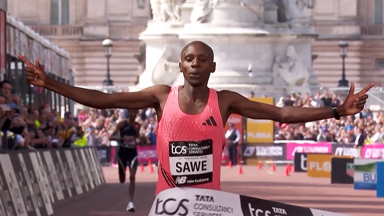 런던 마라톤에서 케냐의 사바스티안 사웨가 세계 최초로 '2시간 벽'을 깼습니다. 사웨는 1시간 59분 30초에 마라톤을 완주해서 직전 세계 기록을 1분 넘게 단축했습니다.