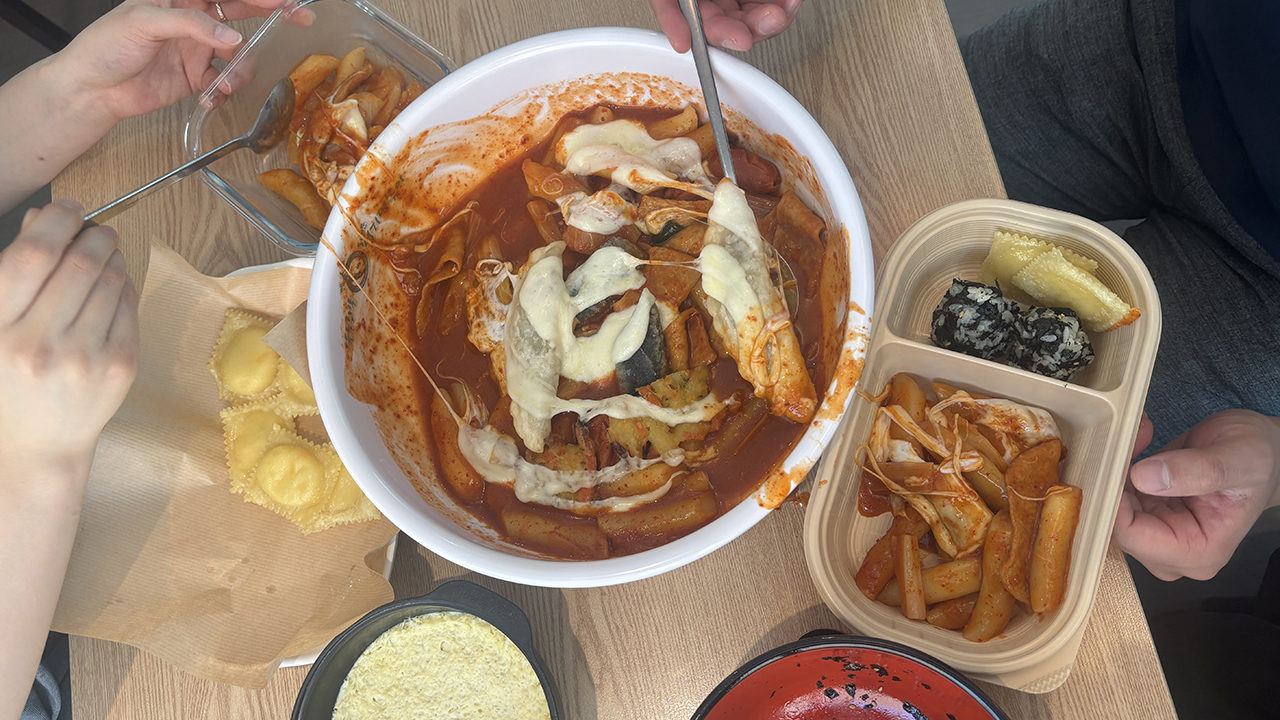 "치즈 토핑 한 번 추가하고, 만두랑 주먹밥도 시킬까요?"