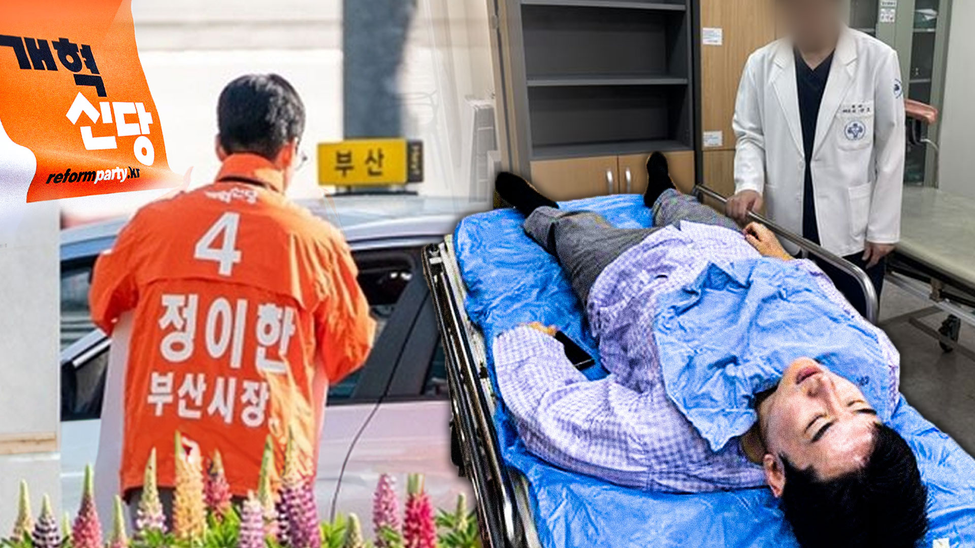 개혁신당 측은 언론 공지를 통해 "금정구 세정타운 인근 거리 유세 중에 '어린 놈이 무슨 시장 출마냐'면서 차에서 뭘 던진 바람에 그걸 맞고 화단에 머리를 박으며 의식을 잃었다"고 설명했습니다.