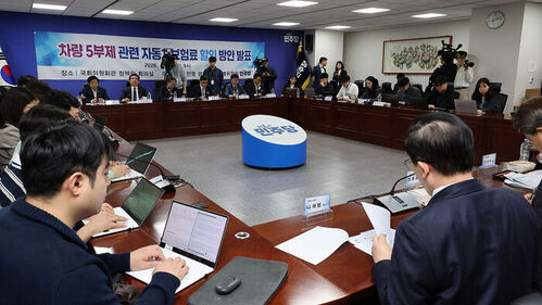 ▲ 더불어민주당 중동상황 경제대응 특별위원회 주최로 27일 국회 의원회관에서 '차량 5부제 관련 자동차보험료 할인 방안 발표'를 하고 있다.