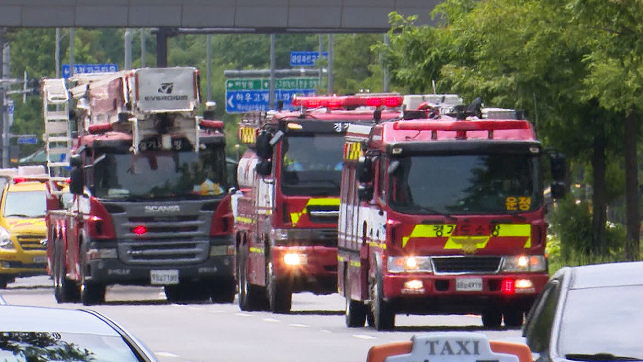 119 구조 신고를 받은 소방차와 구급차가 신속히 출동에 나섭니다.