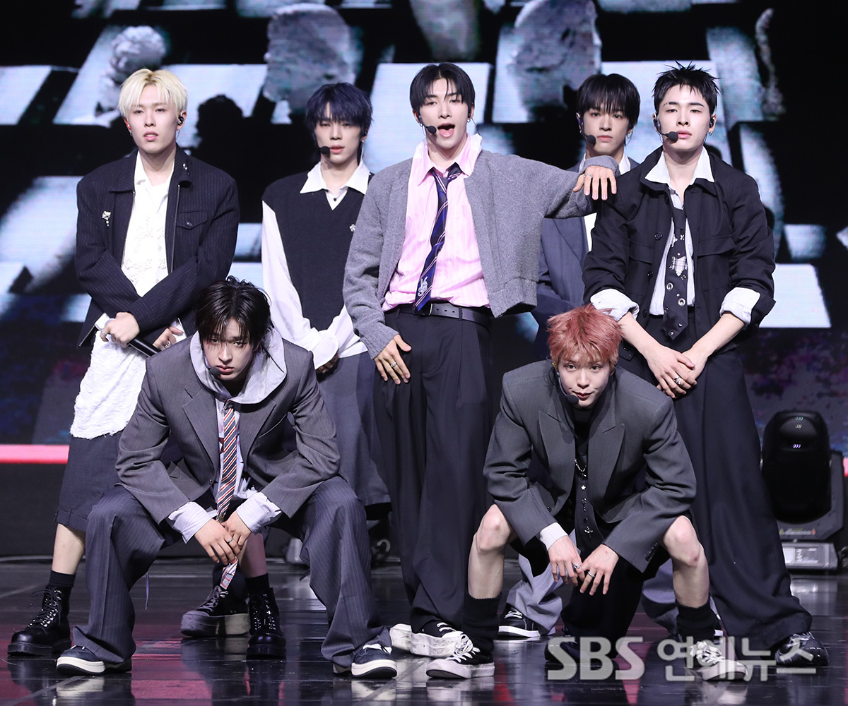 The group NEXZ is performing on stage at the media showcase held at Blue Square in Yongsan-gu, Seoul, on the afternoon of April 27 to commemorate the release of their 2nd single, 'Mmchk'.