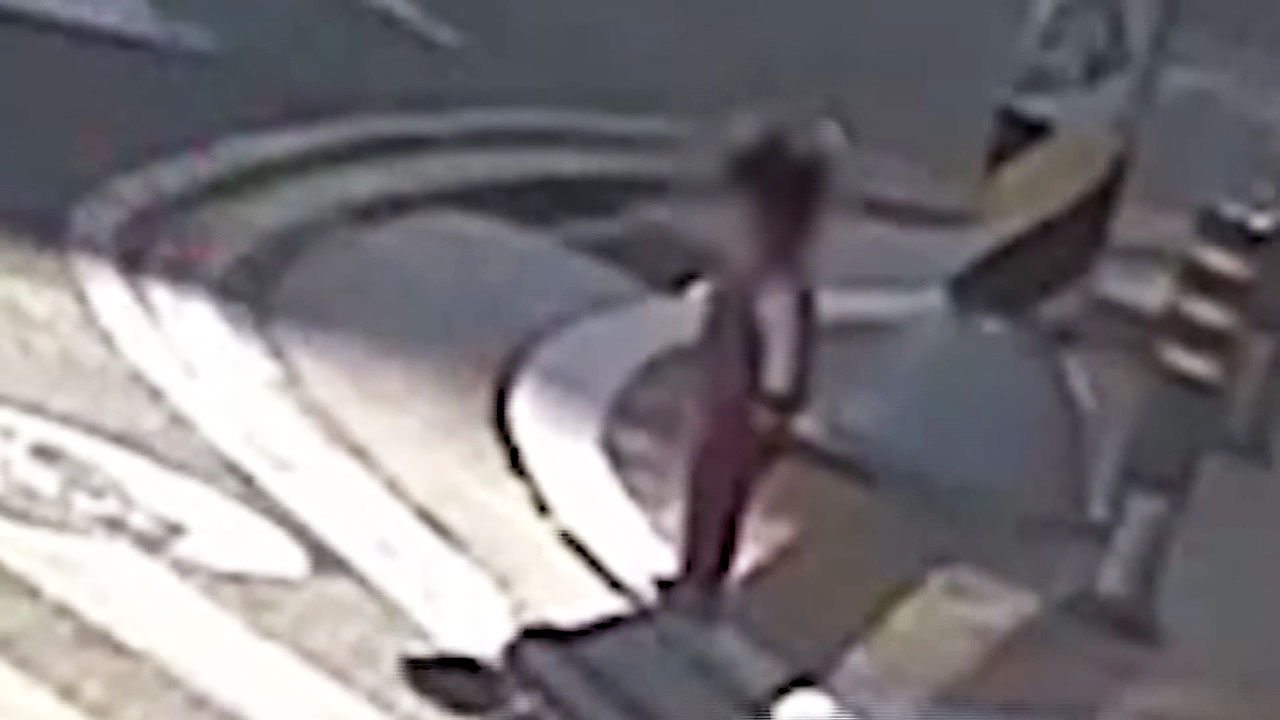 지나가던 시민이 이 모습을 보고 아이를 안아 인도로 데려옵니다.