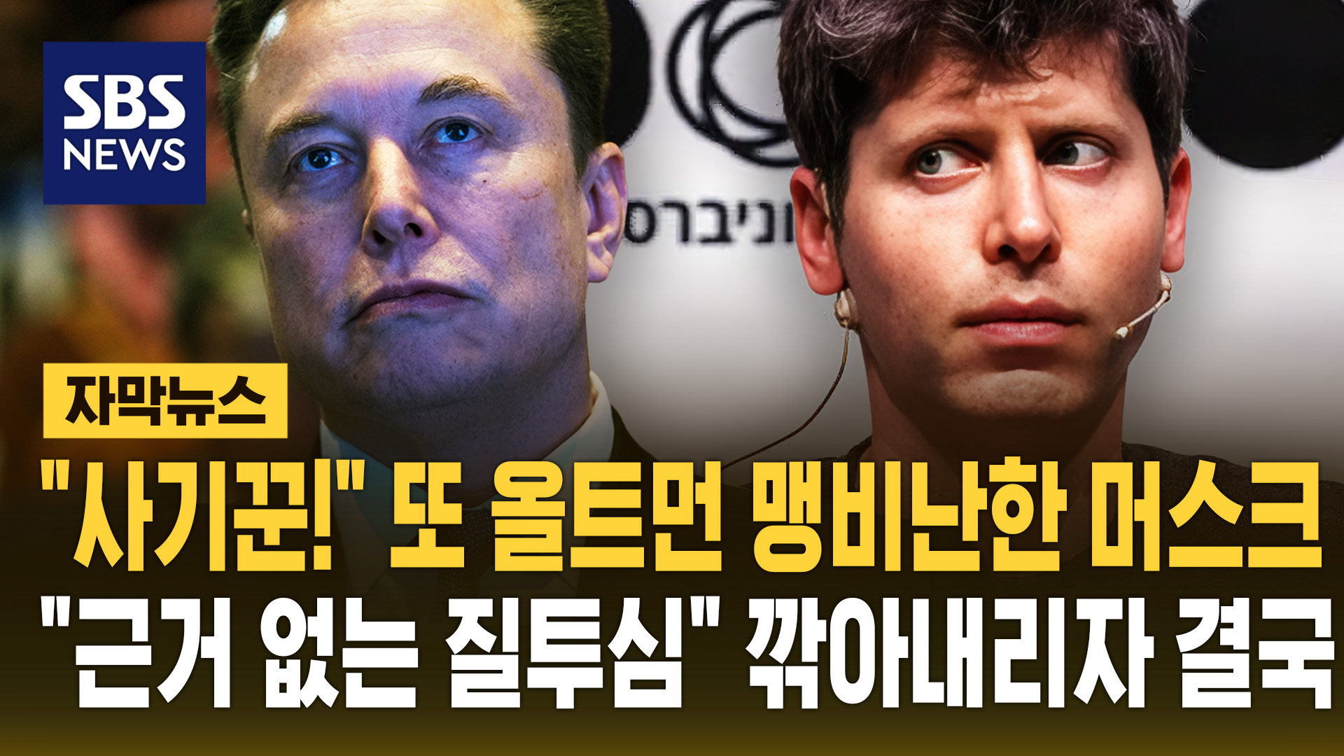 머스크는 현지시간 어제(27일) 자신의 소셜미디어 계정을 통해 "스캠 올트먼과 그레그 스톡맨이 공익단체를 훔쳤다"며 "더 이상 말이 필요없다"고 비난했습니다.