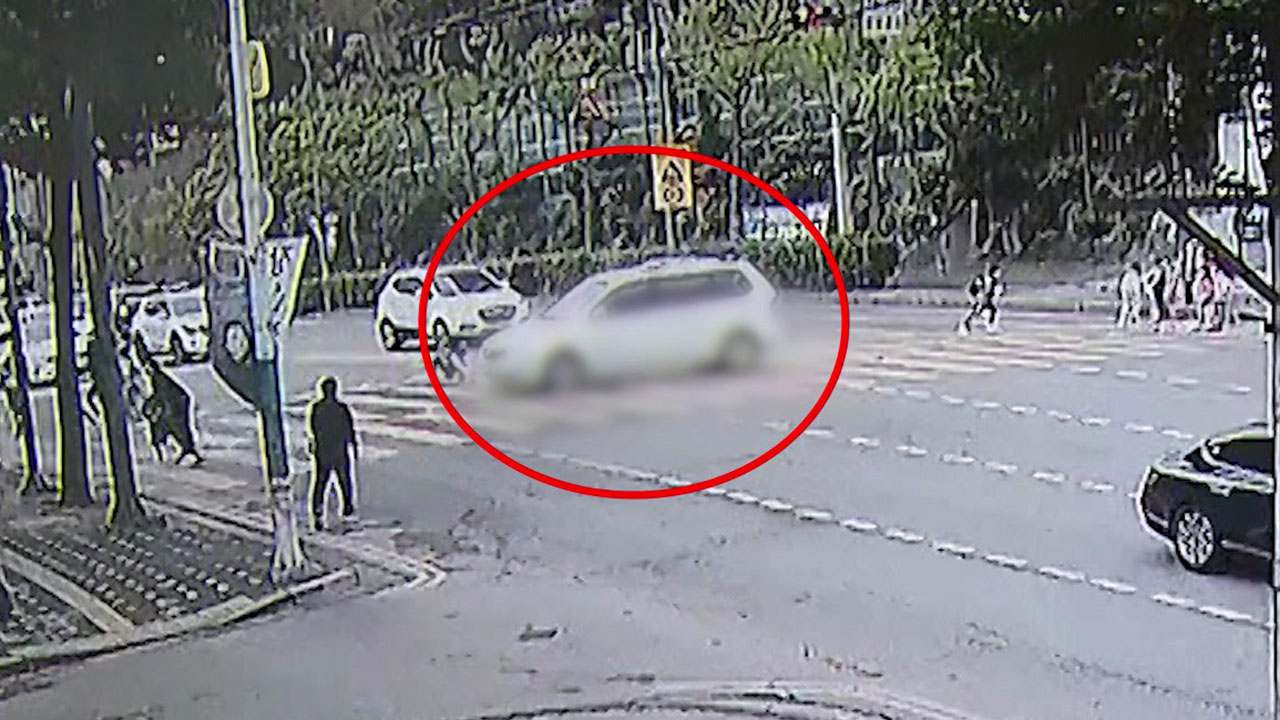 보행 신호에 등굣길 학생들이 횡단보도를 건너는가 싶더니, 흰색 SUV 한 대가 멈추지 않고 그대로 직진해 사람을 들이받습니다.