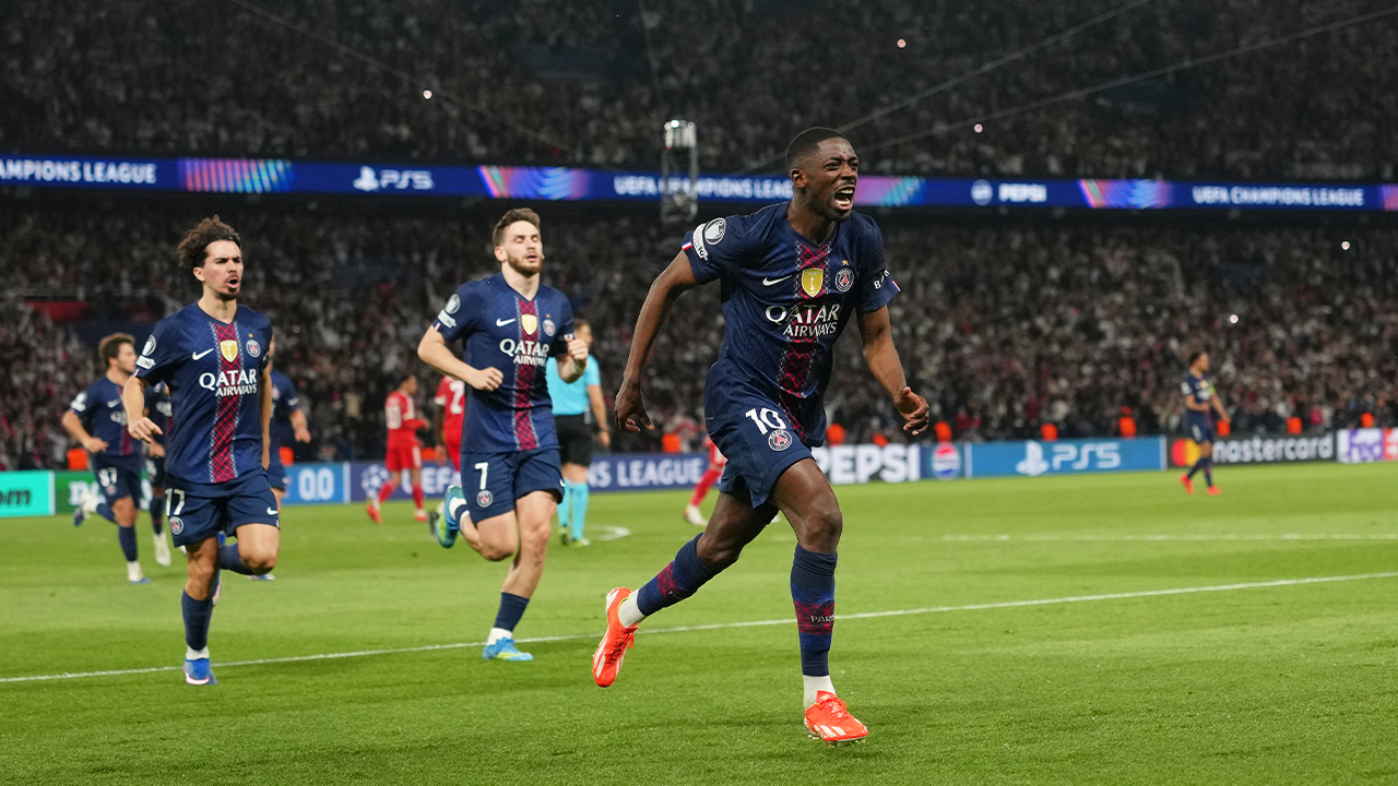 ▲ 골 세리머니 하는 PSG 뎀벨레(맨 앞)