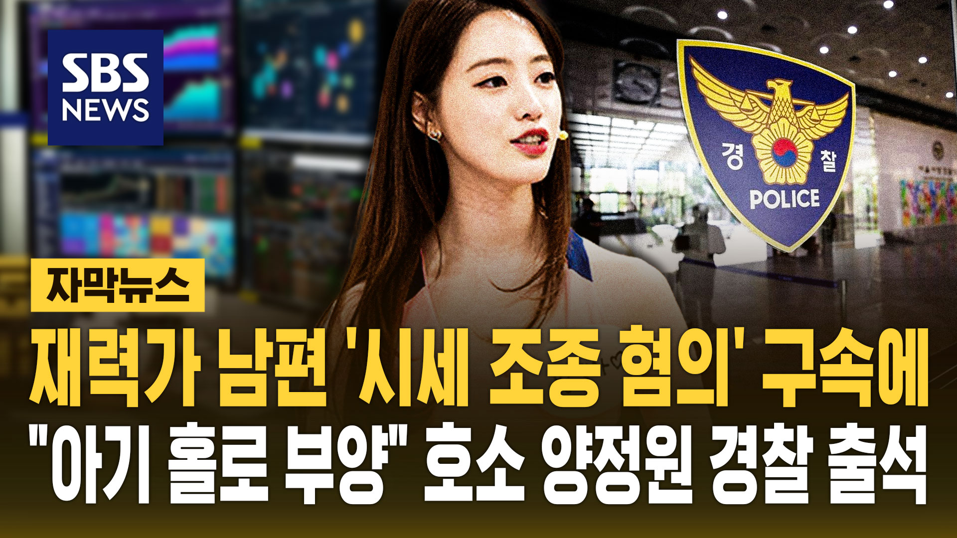 양 씨 남편은 검찰 수사 과정에서 증권사 부장과 기업인 등 시세 조종 세력과 공모해 코스닥 상장사 주가 조작에 가담한 혐의 등으로 최근 구속됐습니다.
