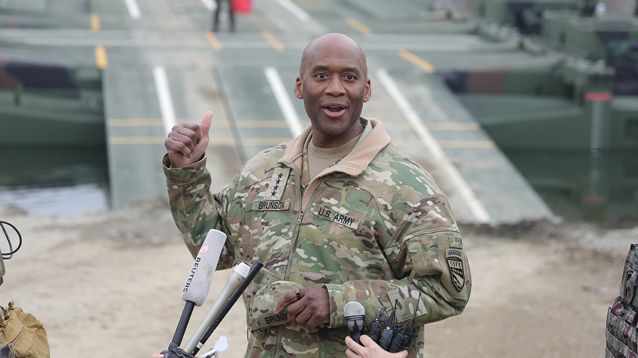 ▲ 지난달 14일 경기도 연천군 임진강에서 실시된 한미 연합 도하훈련에서 제이비어 브런슨 한미연합사령관이 취재진과 인터뷰하고 있다.