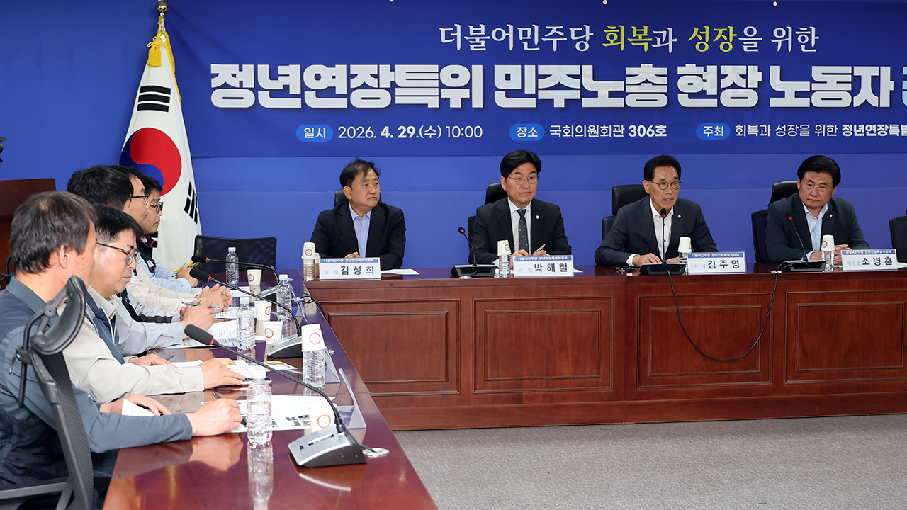 민주당 '회복과 성장을 위한 정년연장특별위원회'가 오늘(29일) 민주노총과 간담회를 열고 법정 정년 연장을 둘러싼 노동계의 의견을 수렴했습니다.