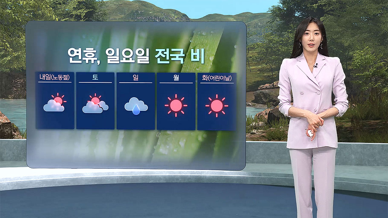 한편 징검다리 연휴 기간 동안 하늘은 대체로 맑게 드러나겠지만, 일요일에는 전국에 비 예보가 있는데요.