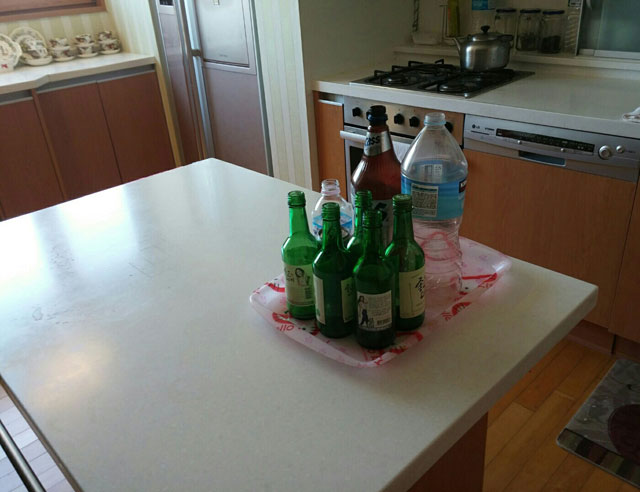 13일 오전 부산시 해운대구에 있는 한 아파트에서 일가족 5명이 숨진 채로 발견됐다. 사진은 아파트 주방과 거실에서 발견된 술병. <해운대경찰서 제공>