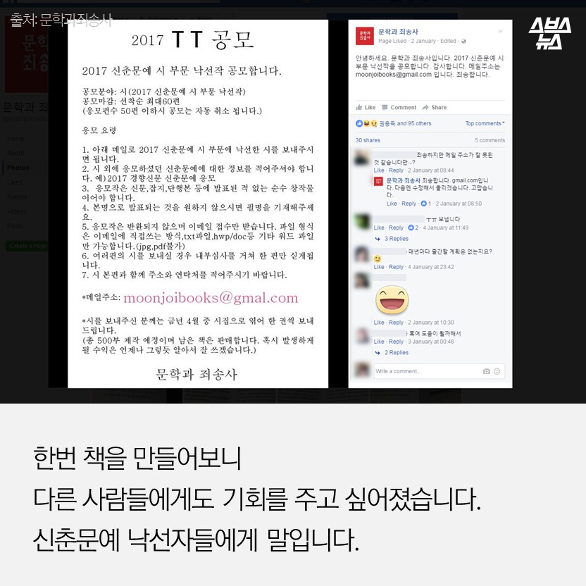 내용은 안 봤습니다. 오로지 선착순으로만 작품을 받았습니다. “신춘문예에도 고심해 시를 낸 건데 떨어져 슬프잖아요. 그래서 선착순으로 했어요.”