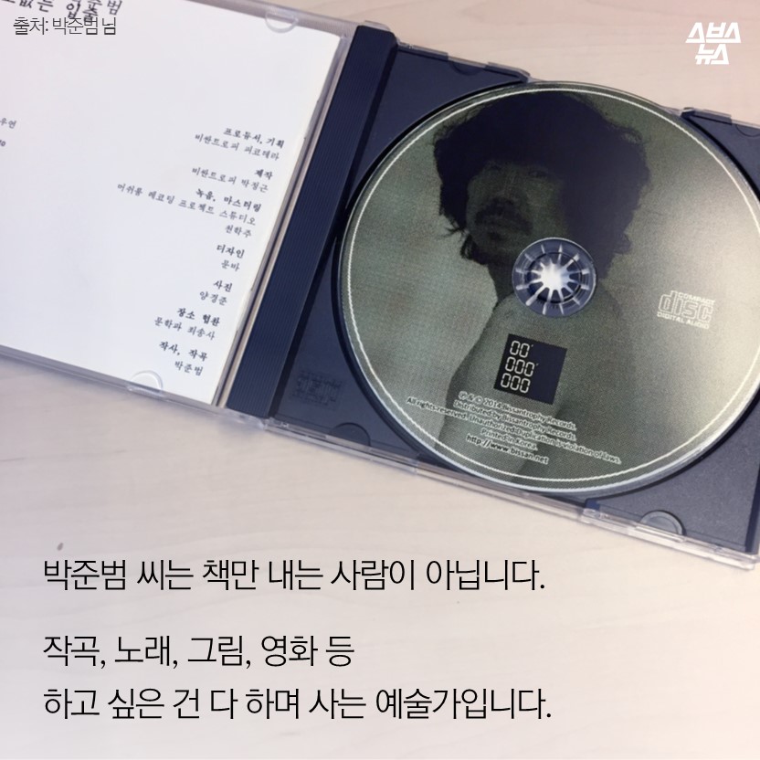 박준범 씨는 책만 내는 사람이 아닙니다. 작곡, 노래, 그림, 영화 등 하고 싶은 건 다 하며 사는 예술가입니다.