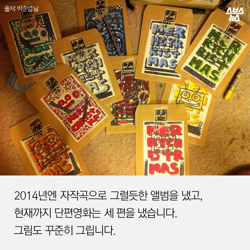 2014년엔 자작곡으로 그럴듯한 앨범을 냈고, 현재까지 단편영화는 세 편을 냈습니다. 그림도 꾸준히 그립니다.