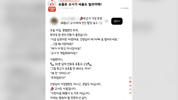 교사에 전화해 "부부싸움 말려줘"…거절했더니 "무책임"